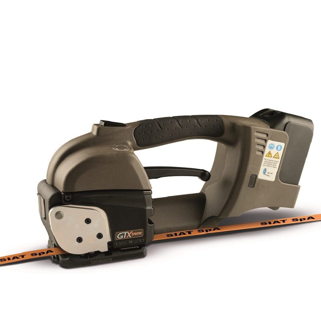 Automatic battery-powered strapping tool, designed for PP and PET straps with a width of 16 and 19 mm and a thickness of 0.70 to 1.27 mm.