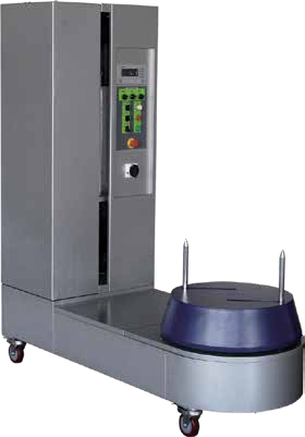 ORBITAL 900B – Mini je poluautomatska mašina koja dolazi sa sistemom za predistezanje folije, posebno konstruisana za omotavanje kofera, prtljaga i drugih specifičnih paketa.